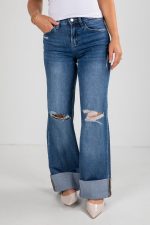 The Audrey Medium Wash High-Rise Cuffed Wide Leg Jeans are a modern take on a classic silhouette! Featuring a flattering high-rise waist and relaxed wide-leg fit with cuffed hems, these jeans offer effortless style and comfort. The versatile medium wash makes them perfect for pairing with tucked-in tops, cropped sweaters, or blouses for a chic, everyday look! Stretchy Medium Wash Denim Fabrication Distressed High-Rise Button + Hidden Zipper Fly Closure Classic 5-Pocket Cut Belt Loops Wide Leg Fit Cuffed Hems 94.5% Cotton, 4.5% Polyester, 1% Spandex Machine Wash Cold Inside Out, Tumble Dry Low Model is 5’6″ and wearing a Size 24.Garment Measurements in Inches:24 | Waist 24” | Hips 31” | Length 41” | Inseam 31.5″25 | Waist 25” | Hips 32” | Length 41.5” | Inseam 32”26 | Waist 26” | Hips 33” | Length 42” | Inseam 32”27 | Waist 27” | Hips 34” | Length 42” | Inseam 32”28 | Waist 28” | Hips 35” | Length 42” | Inseam 32”29 | Waist 29” | Hips 36” | Length 42” | Inseam 32”30 | Waist 30” | Hips 37” | Length 42.5” | Inseam 32″31 | Waist 31” | Hips 38” | Length 42.5” | Inseam 32″32 | Waist 32” | Hips 39” | Length 42.5” | Inseam 32″