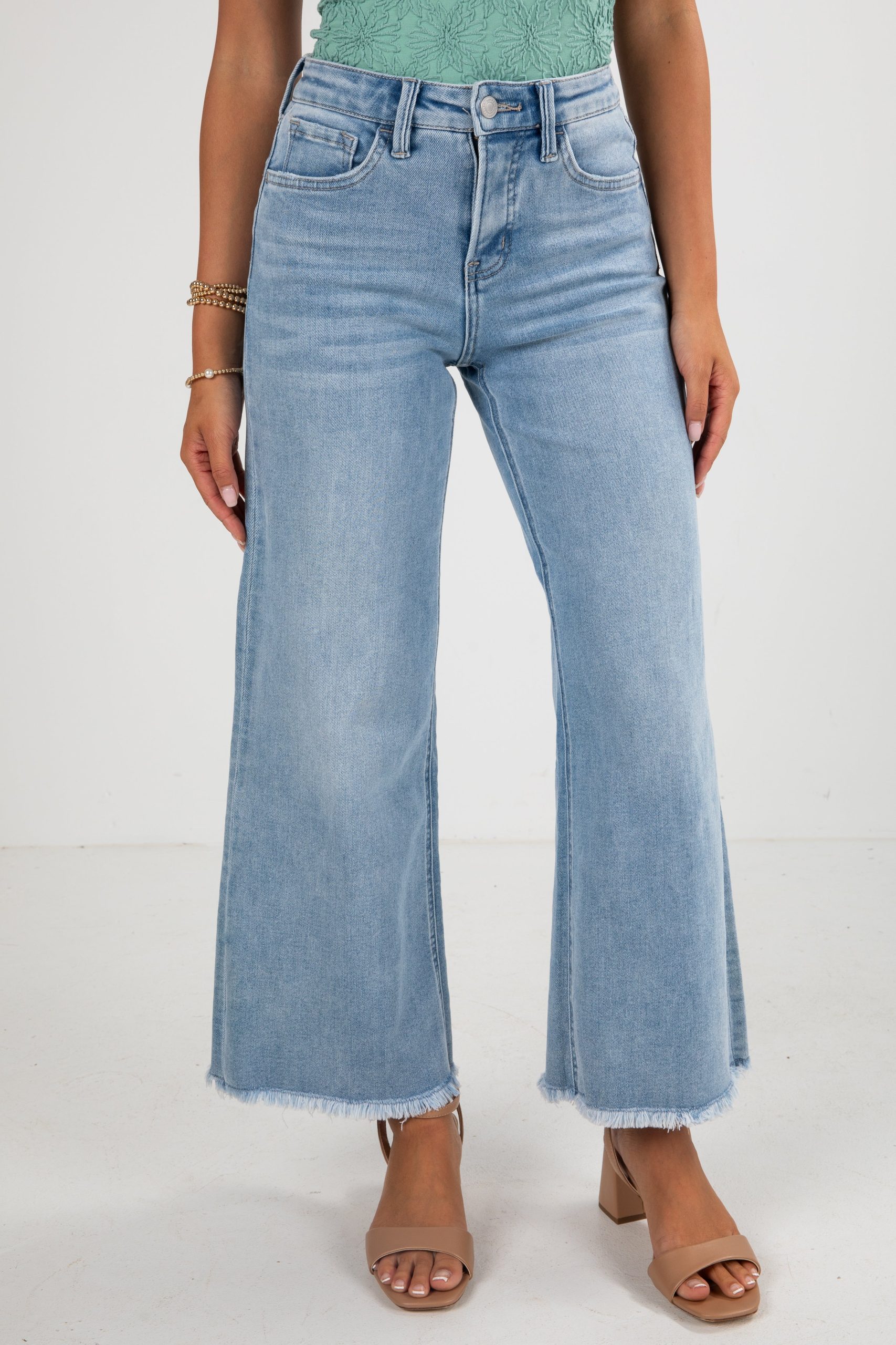Step into timeless denim style with the Lainey Light Wash High-Rise Tummy Control Wide Leg Jeans! Designed to flatter, these jeans feature a supportive high-rise waistband with built-in tummy control for a smooth, confident fit. The light wash gives them a laid-back, vintage-inspired vibe, while the wide leg silhouette adds a modern touch that’s both comfortable and effortlessly chic. Perfect for pairing with everything from fitted tanks to flowy blouses, these jeans are your new go-to for all-day style and comfort! Stretchy Light Wash Denim Fabrication High-Rise Slimming Waistband Sculpting Stretch Fabric Smoothing Button + Hidden Zipper Fly Closure Classic 5-Pocket Cut Belt Loops Wide Leg Fit Frayed Hems 75% Cotton, 23% Polyester, 2% Spandex Machine Wash Cold Inside Out, Tumble Dry Low Model is 5’4″ and wearing a Size 24.Garment Measurements in Inches:24 | Waist 24” | Hips 30” | Length 37” | Inseam 27″25 | Waist 25” | Hips 31” | Length 37.5” | Inseam 27”26 | Waist 26” | Hips 32” | Length 37.5” | Inseam 27”27 | Waist 27” | Hips 33” | Length 37.5” | Inseam 27”28 | Waist 28” | Hips 34” | Length 38” | Inseam 27”29 | Waist 29” | Hips 35” | Length 38” | Inseam 27”30 | Waist 30” | Hips 36” | Length 38” | Inseam 27″31 | Waist 31” | Hips 37” | Length 38.5” | Inseam 27″32 | Waist 32” | Hips 38” | Length 39” | Inseam 27″